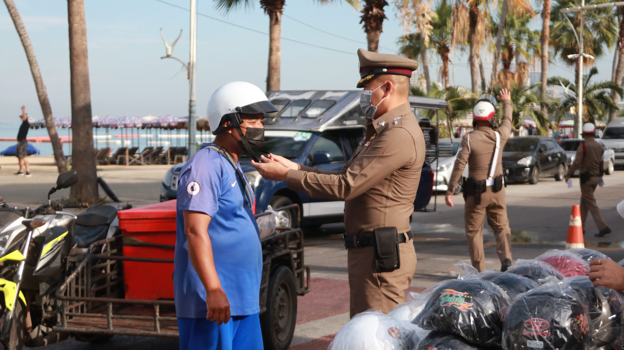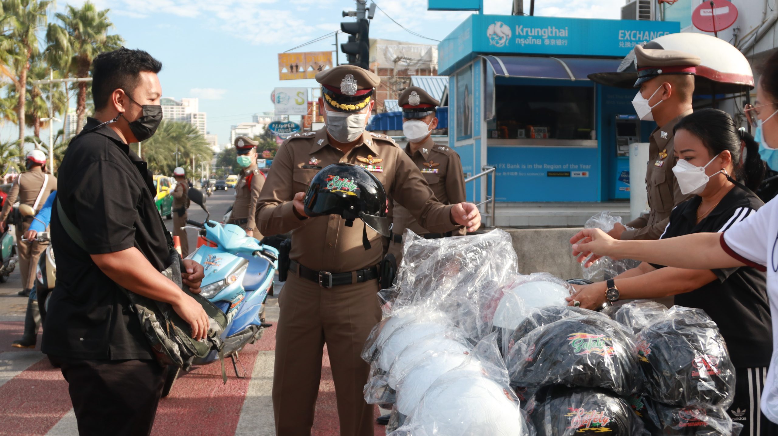 ยังคงเดินหน้าแจกไม่เลิก เพื่อให้พี่น้องชาวพัทยาตระหนัก เมื่อมีหมวกแล้ว ไม่ใส ก็ถือว่า ไม่รักตัวเองและครอบครัว เพราะทุกความสูญเสีย เกิดขึ้นได้ตลอดเวลา
