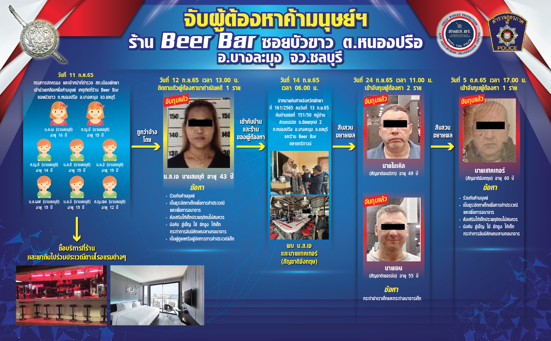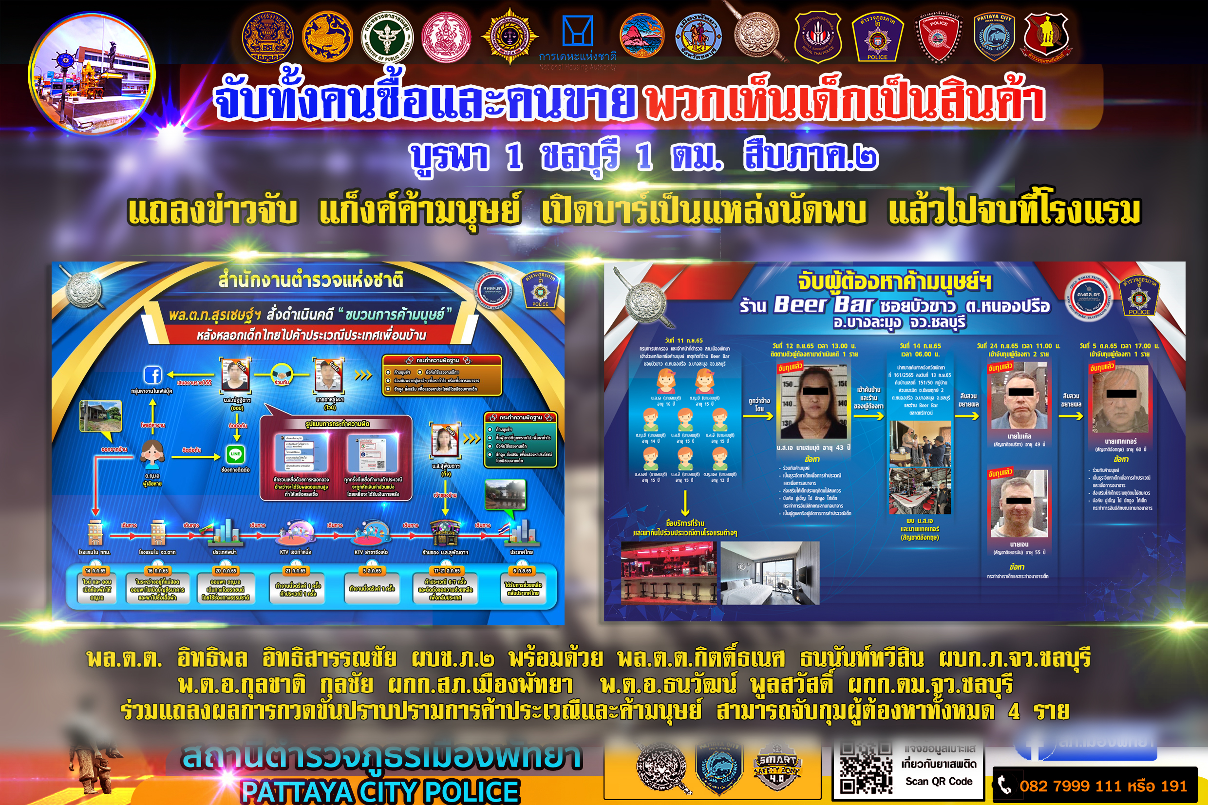 บูรพา 1 นำทีมแถลงข่าว กวาดล้างการค้ามนุษย์ เด็กอายุ 14 ปี มีผู้ต้องหาทั้งไทยและต่างชาติ