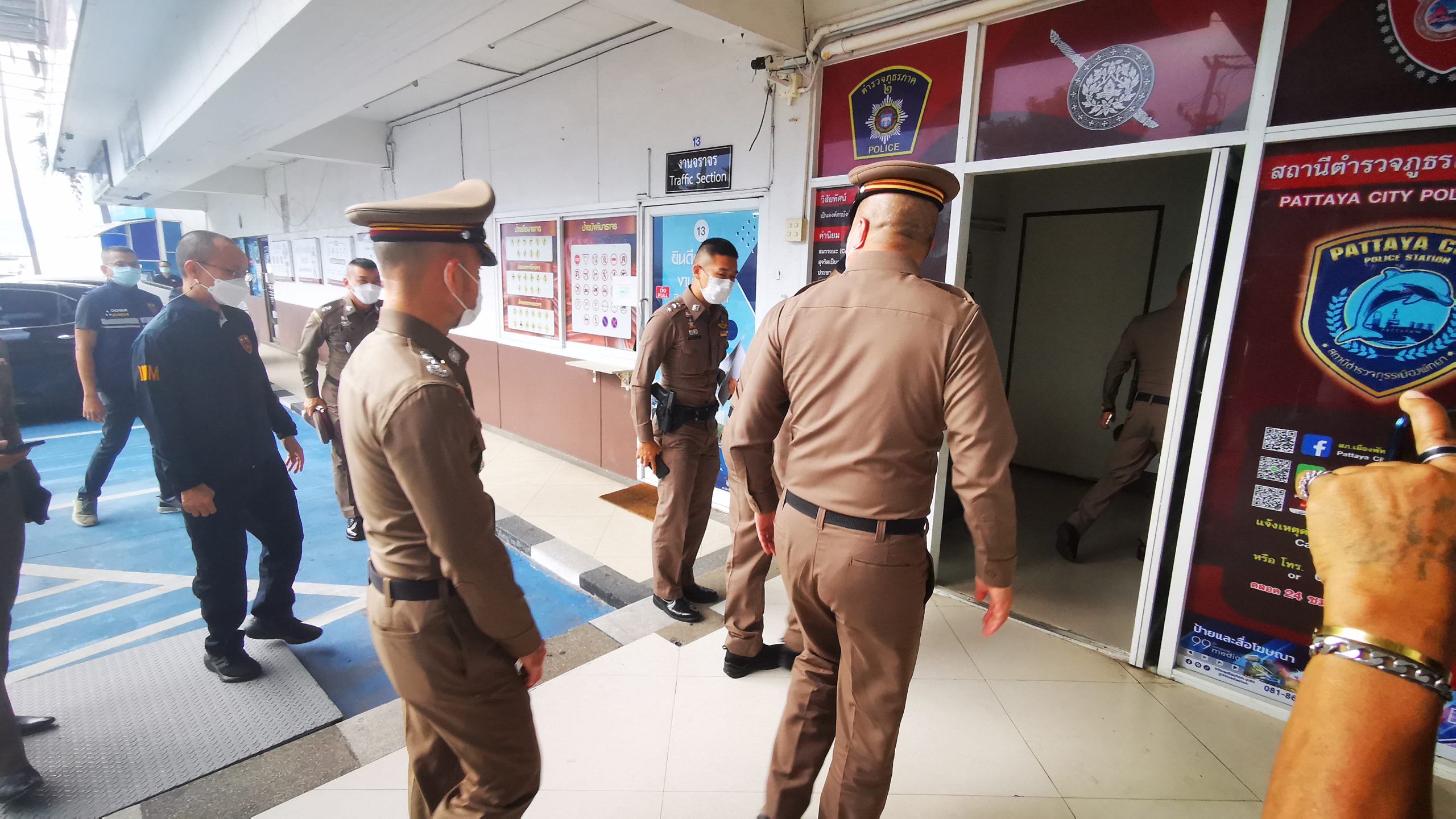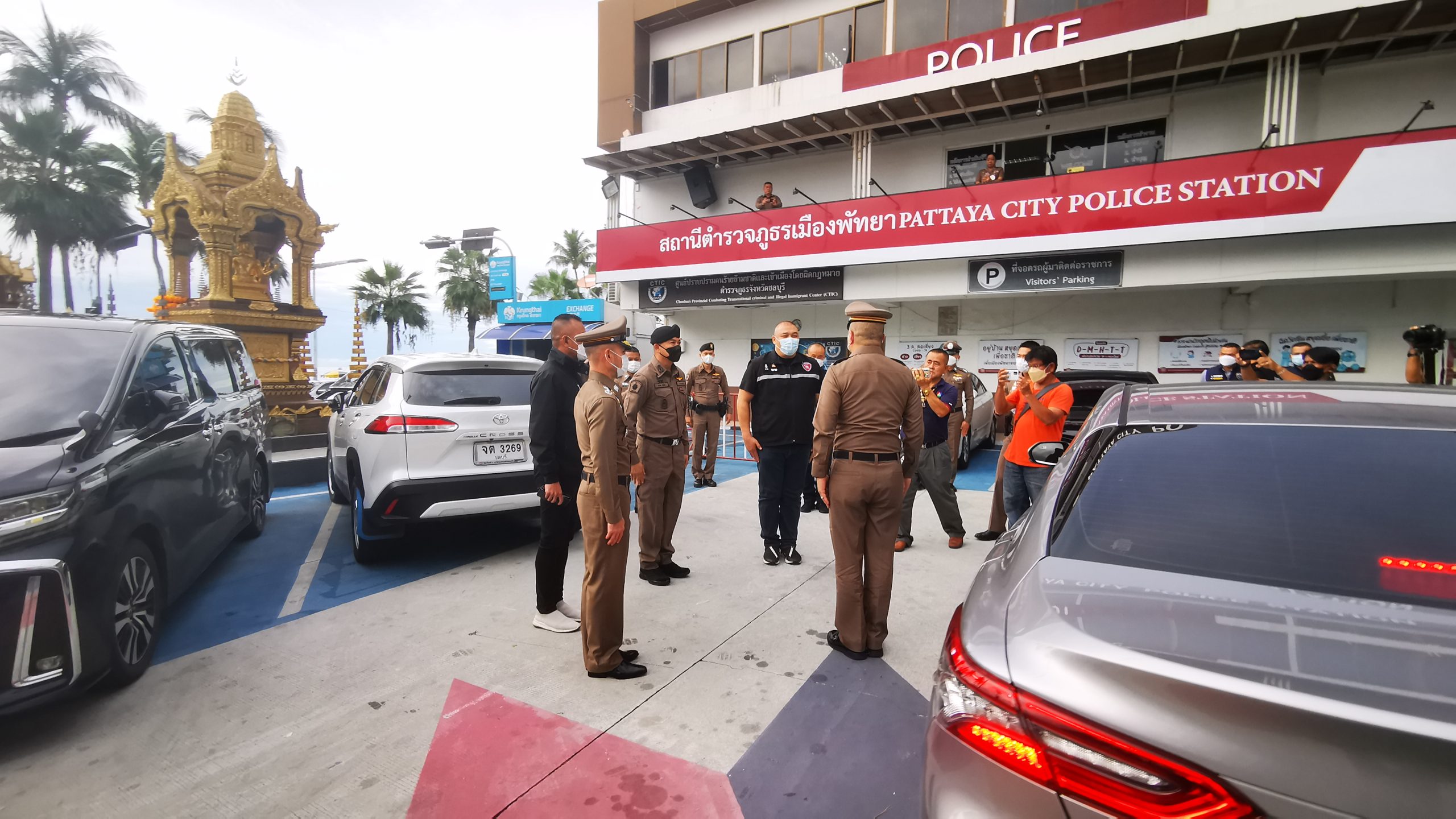 พล.ต.ท.อิทธิพล อิทธิสารรณชัย ผบช.ภ.2 พล.ต.ต.กิตติ์ธเนศ ธนนันท์ทวีสิน ผบก.ภ.จว.ชลบุรี พ.ต.อ.กุลชาติ กุลชัย ผกก.สภ.เมืองพัทยา พ.ต.อ.ธนวัฒน์ พูลสวัสดิ์ ผกก.ตม.จว.ชลบุรี