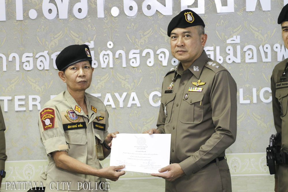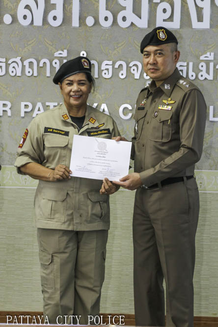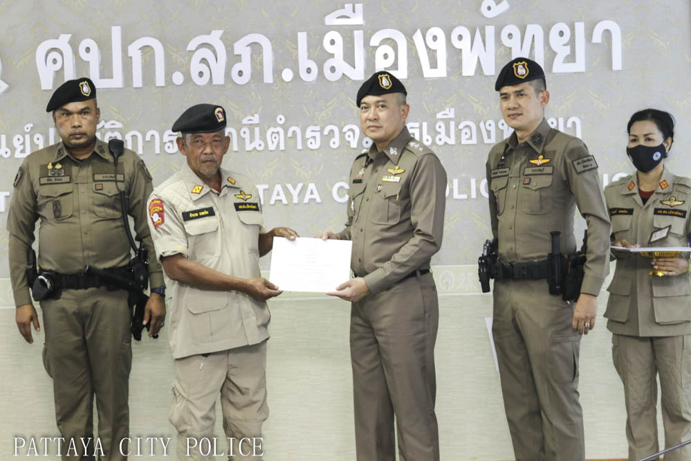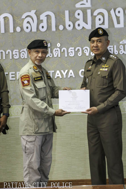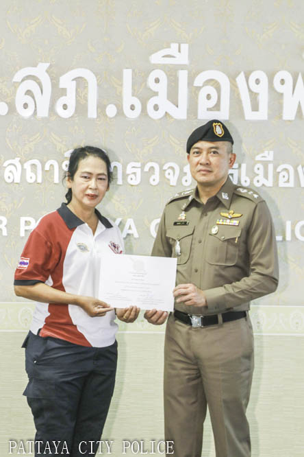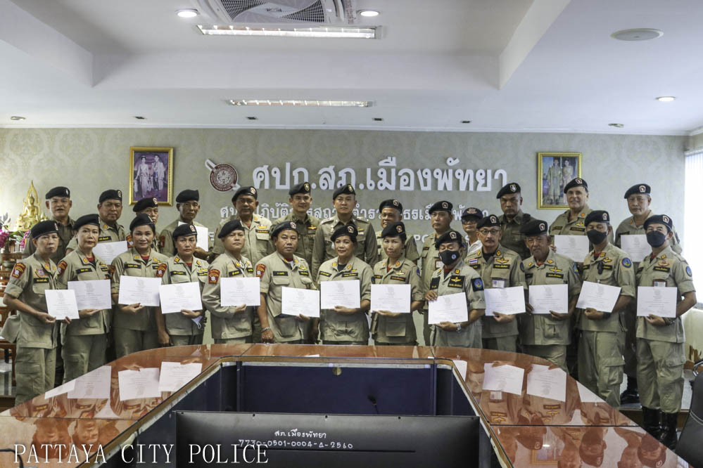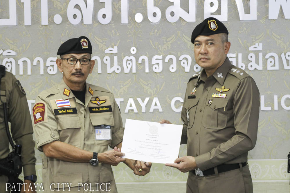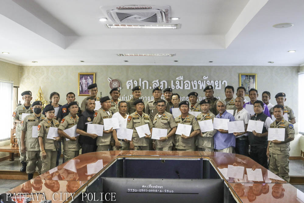 ได้จัดพิธี มอบใบประกาศให้กับตำรวจอาสา ประจำสถานีตำรวจภูธรเมืองพัทยา ที่ได้ผ่านการอบรมหลักสูตร ของสำนักงานตำรวจแห่งชาติ และทำงานในฐานผู้ช่วยเจ้าพนักงาน ดูแลสังคมเมืองพัทยา ให้อยู่ในกรอบระเบียบ ในการล่วงละเมิดสิทธิของคนอื่น ตามที่กฏหมายได้บัญญัติไว้ ด้วยความมุ่งมั่นอุตสาหะ เสียสละเวลา แรงกาย แรงใจ จนสังคมสงบสุขได้ตามสมควร