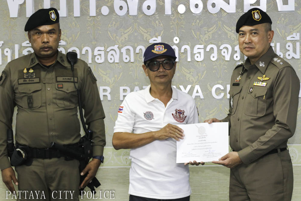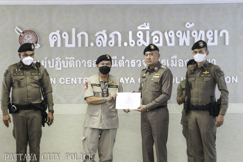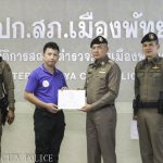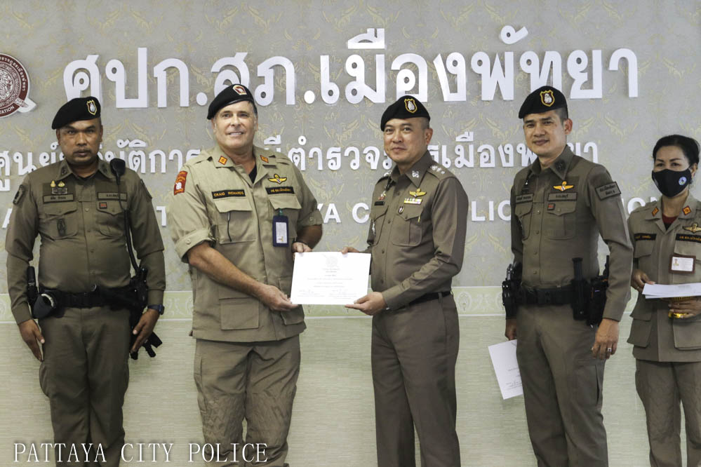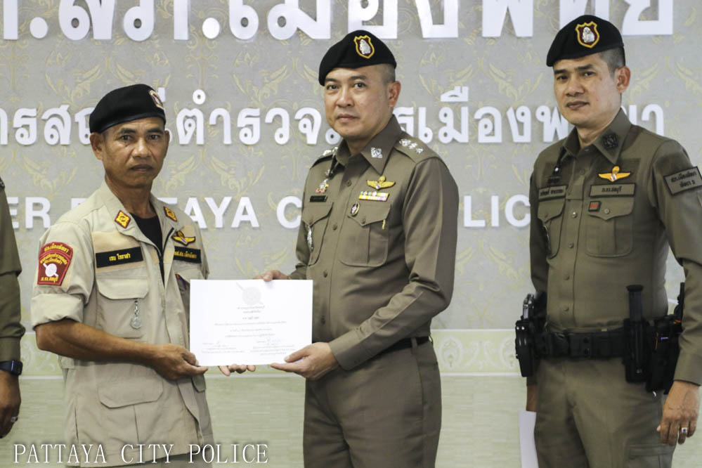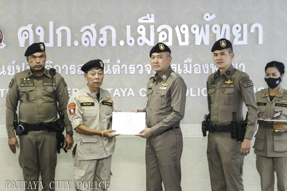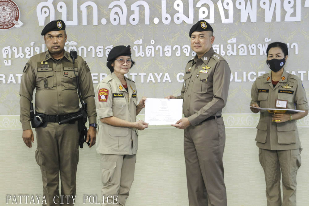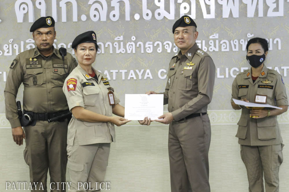 ได้จัดพิธี มอบใบประกาศให้กับตำรวจอาสา ประจำสถานีตำรวจภูธรเมืองพัทยา ที่ได้ผ่านการอบรมหลักสูตร ของสำนักงานตำรวจแห่งชาติ และทำงานในฐานผู้ช่วยเจ้าพนักงาน ดูแลสังคมเมืองพัทยา ให้อยู่ในกรอบระเบียบ ในการล่วงละเมิดสิทธิของคนอื่น ตามที่กฏหมายได้บัญญัติไว้ ด้วยความมุ่งมั่นอุตสาหะ เสียสละเวลา แรงกาย แรงใจ จนสังคมสงบสุขได้ตามสมควร