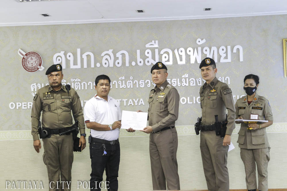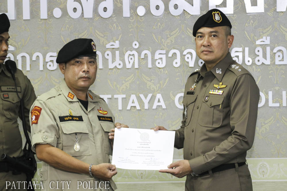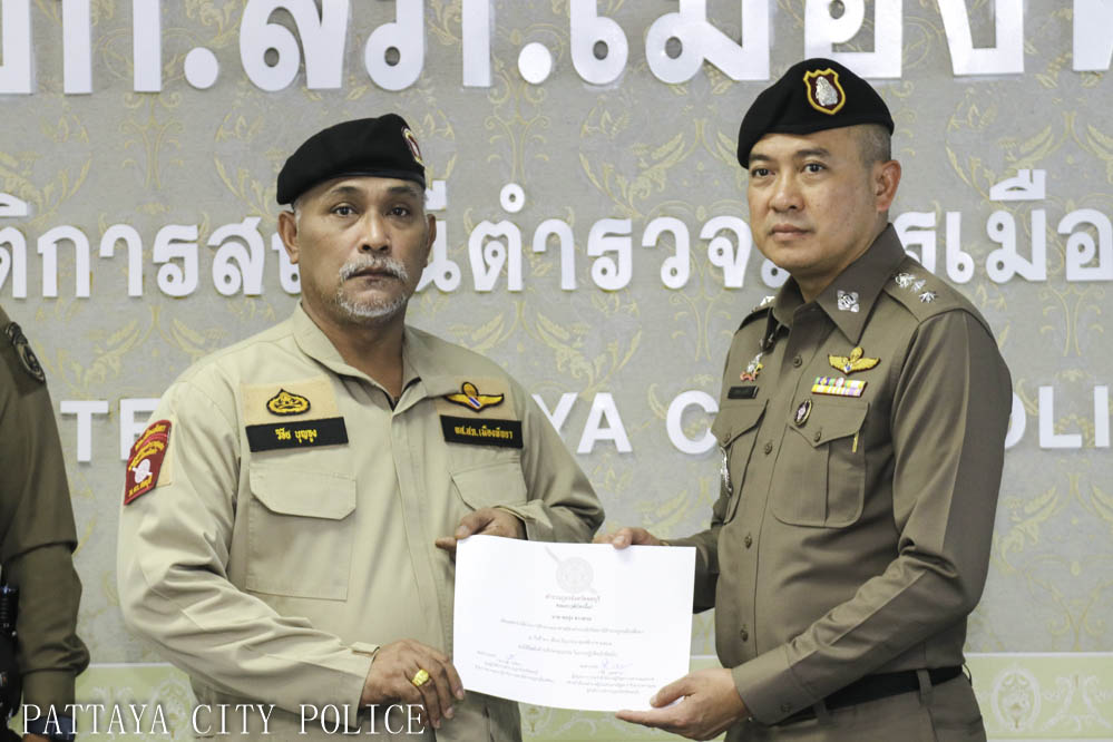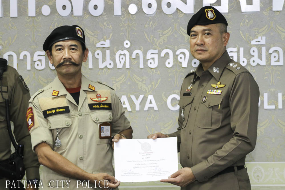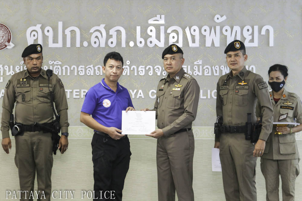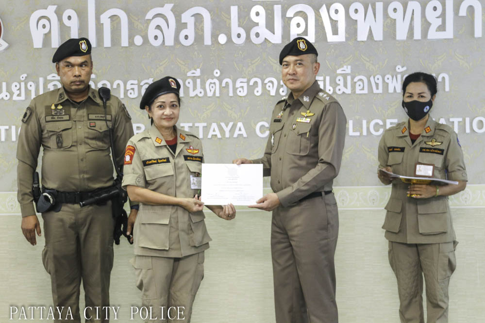 ได้จัดพิธี มอบใบประกาศให้กับตำรวจอาสา ประจำสถานีตำรวจภูธรเมืองพัทยา ที่ได้ผ่านการอบรมหลักสูตร ของสำนักงานตำรวจแห่งชาติ และทำงานในฐานผู้ช่วยเจ้าพนักงาน ดูแลสังคมเมืองพัทยา ให้อยู่ในกรอบระเบียบ ในการล่วงละเมิดสิทธิของคนอื่น ตามที่กฏหมายได้บัญญัติไว้ ด้วยความมุ่งมั่นอุตสาหะ เสียสละเวลา แรงกาย แรงใจ จนสังคมสงบสุขได้ตามสมควร