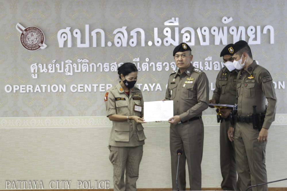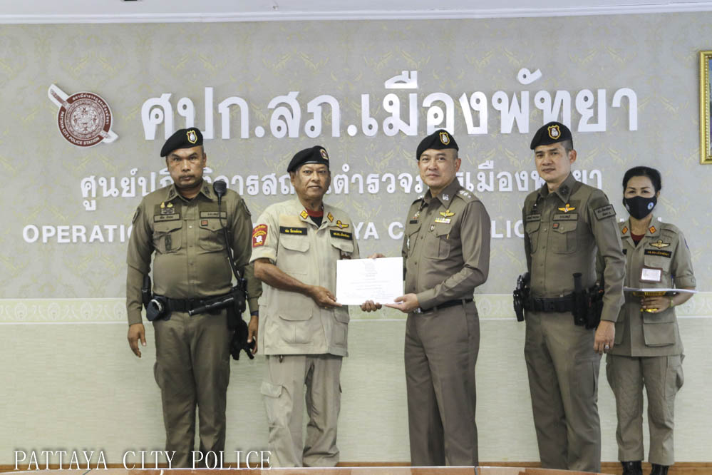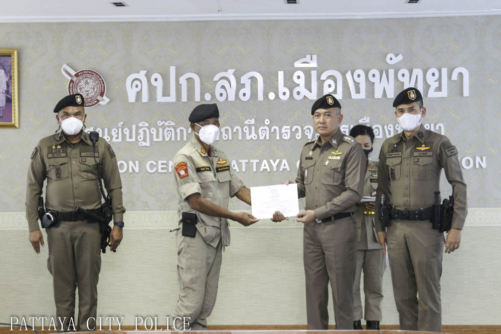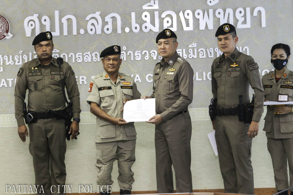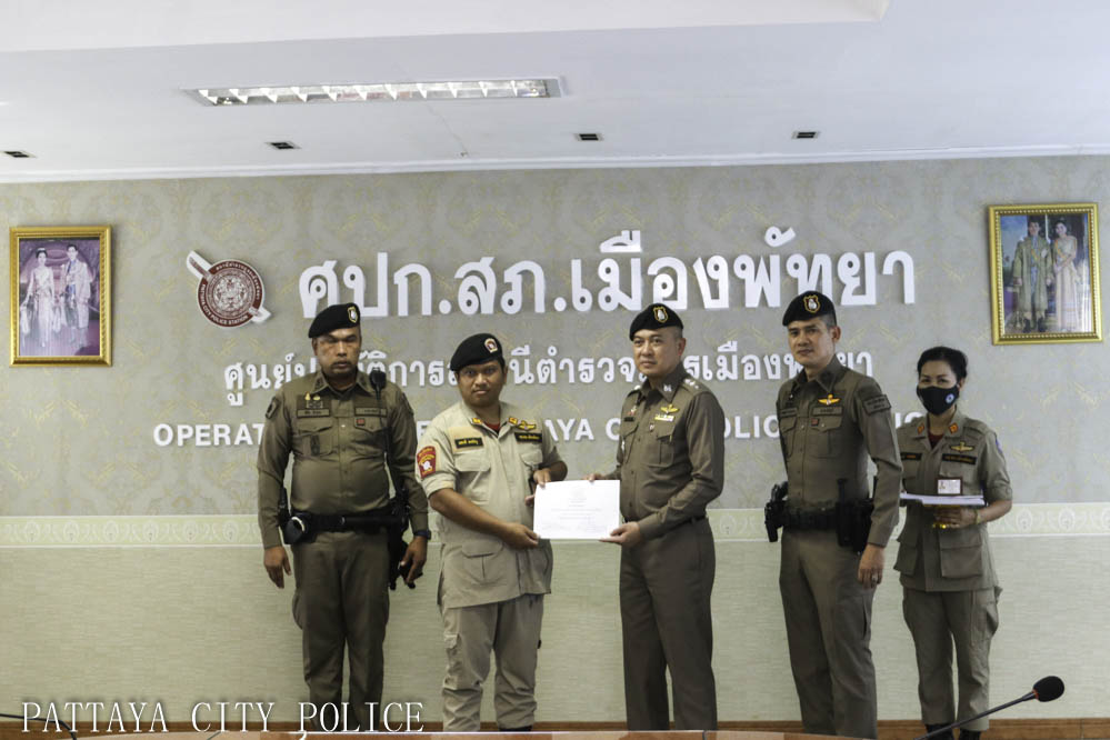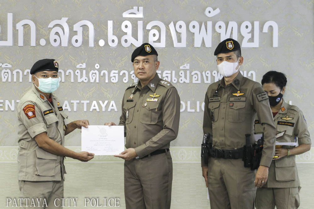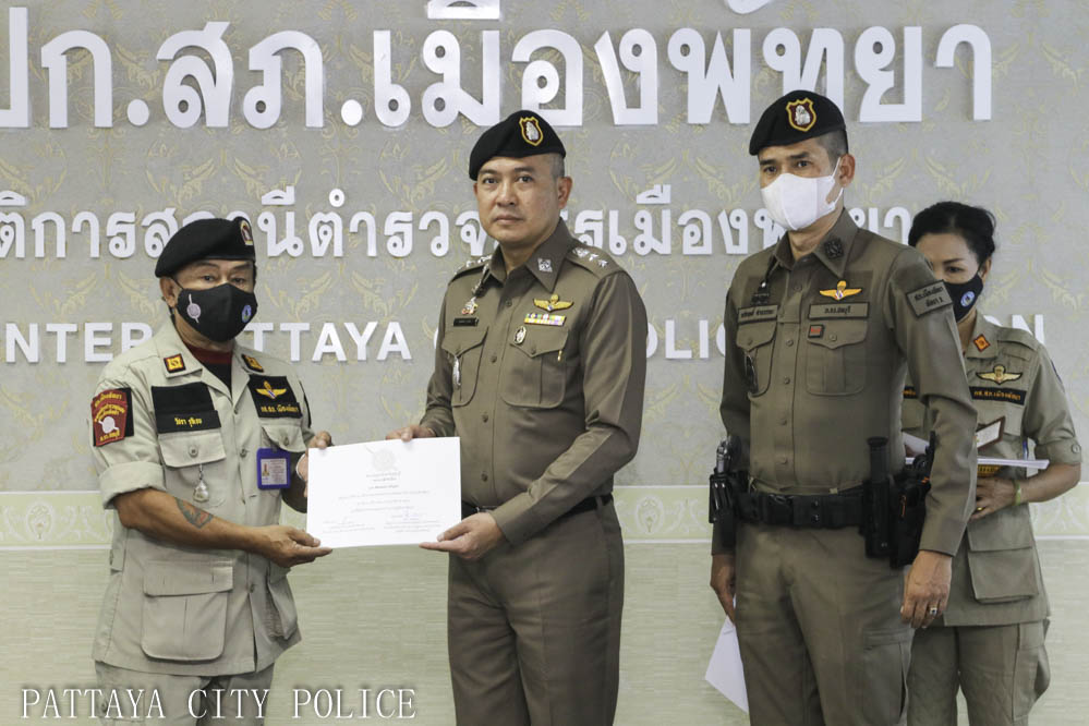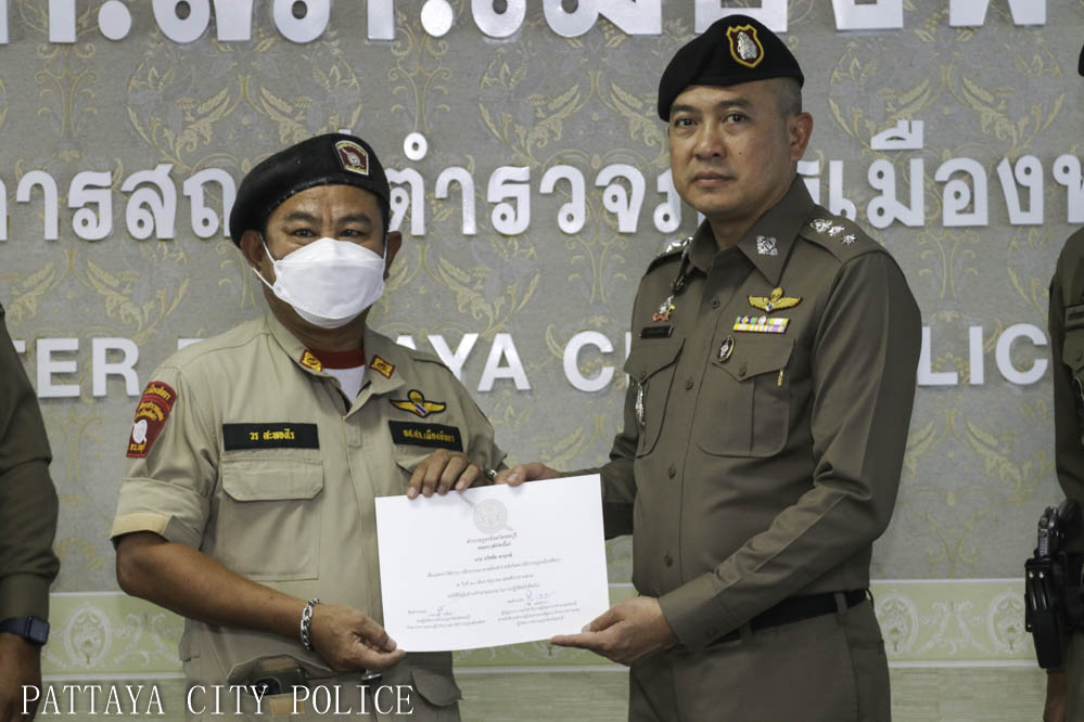 พ.ต.อ.กุลชาต กุลชัย ผกก.สภ.เมืองพัทยา จัดพิธีมอบใบประกาศพร้อมด้วยบัตรประจำตัว ตำรวจอาสา ประจำสถานีตำรวจภูธรเมืองพัทยา