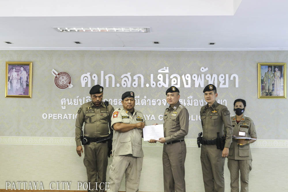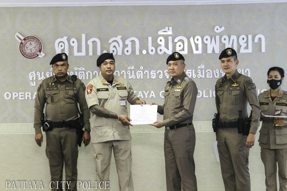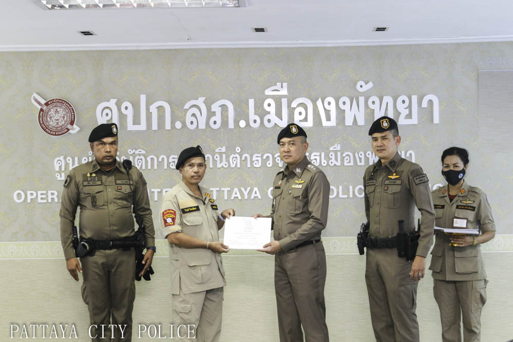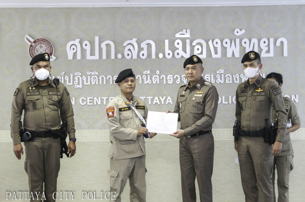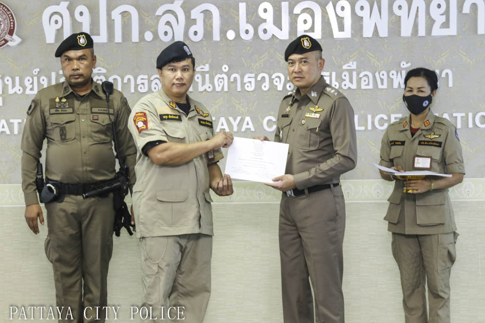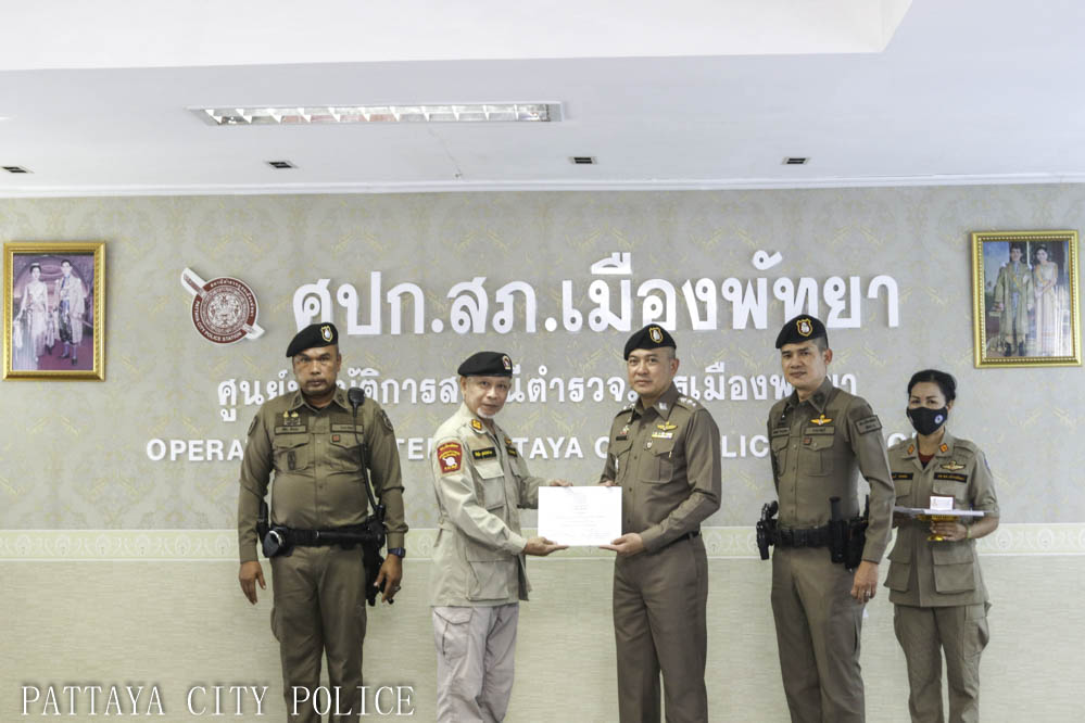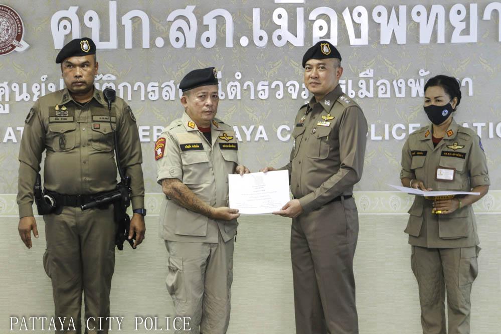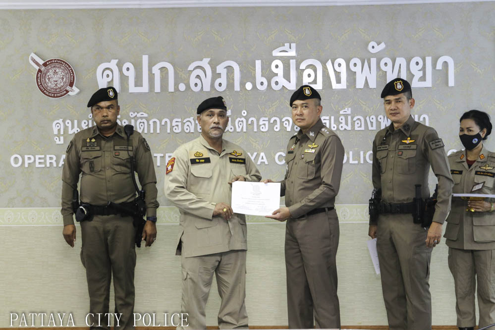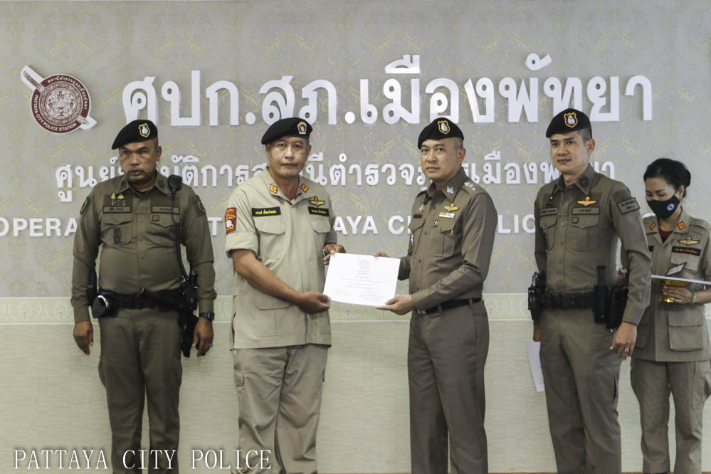 พ.ต.อ.กุลชาต กุลชัย ผกก.สภ.เมืองพัทยา จัดพิธีมอบใบประกาศพร้อมด้วยบัตรประจำตัว ตำรวจอาสา ประจำสถานีตำรวจภูธรเมืองพัทยา