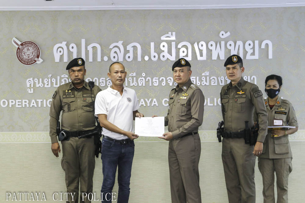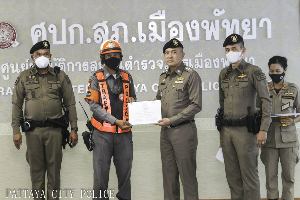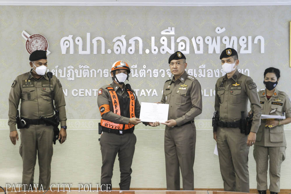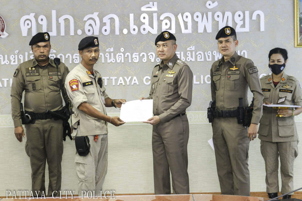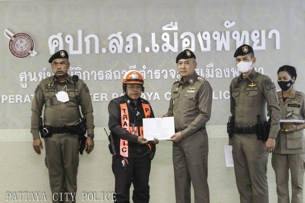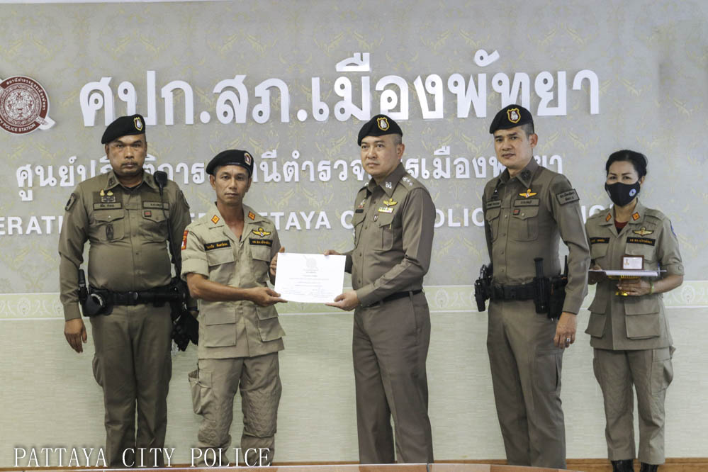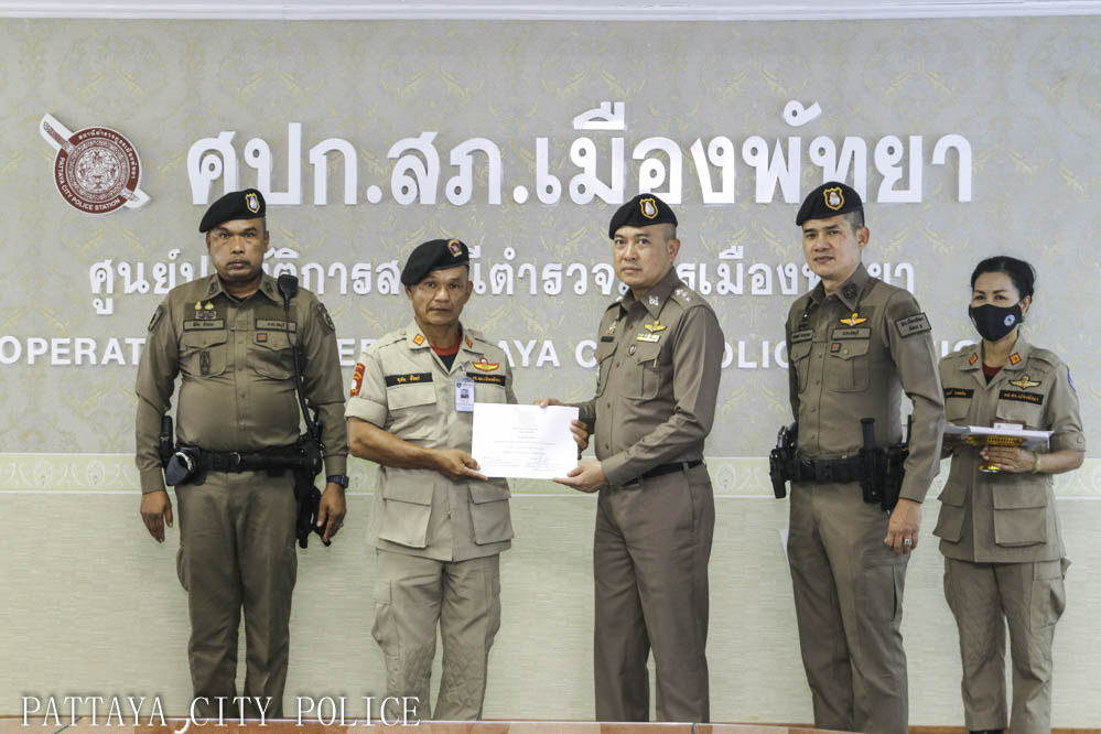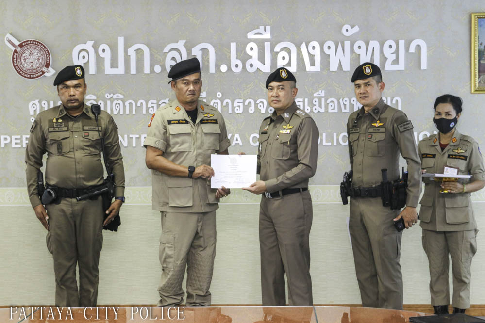 พ.ต.อ.กุลชาต กุลชัย ผกก.สภ.เมืองพัทยา จัดพิธีมอบใบประกาศพร้อมด้วยบัตรประจำตัว ตำรวจอาสา ประจำสถานีตำรวจภูธรเมืองพัทยา