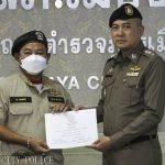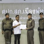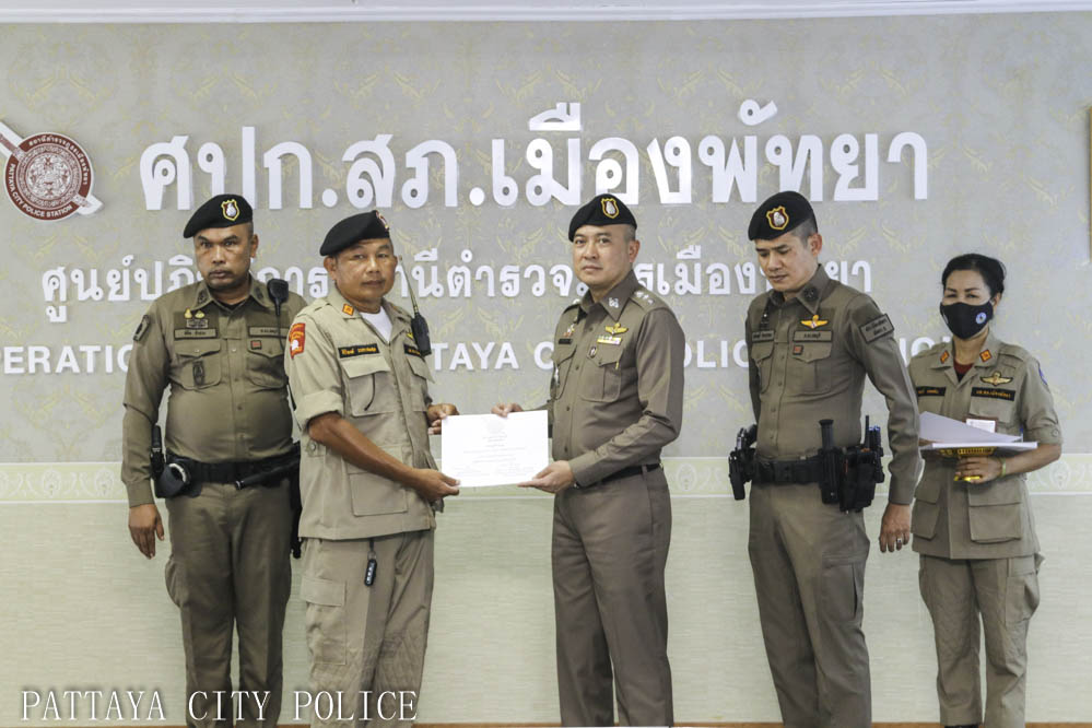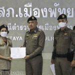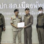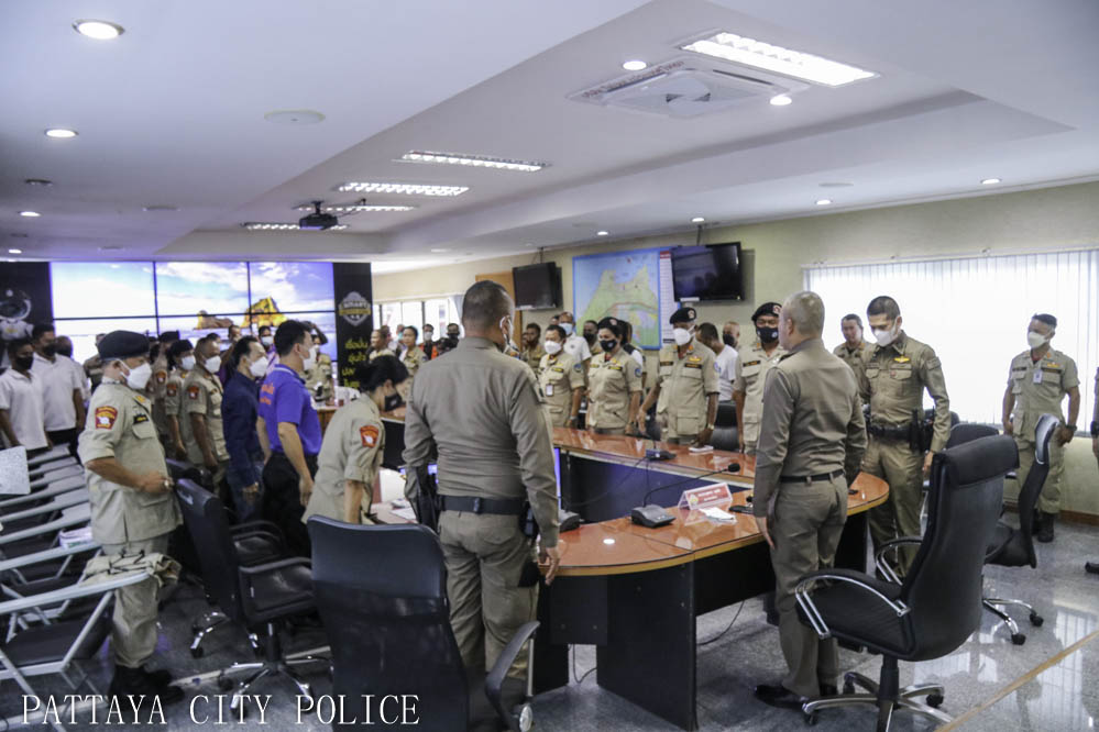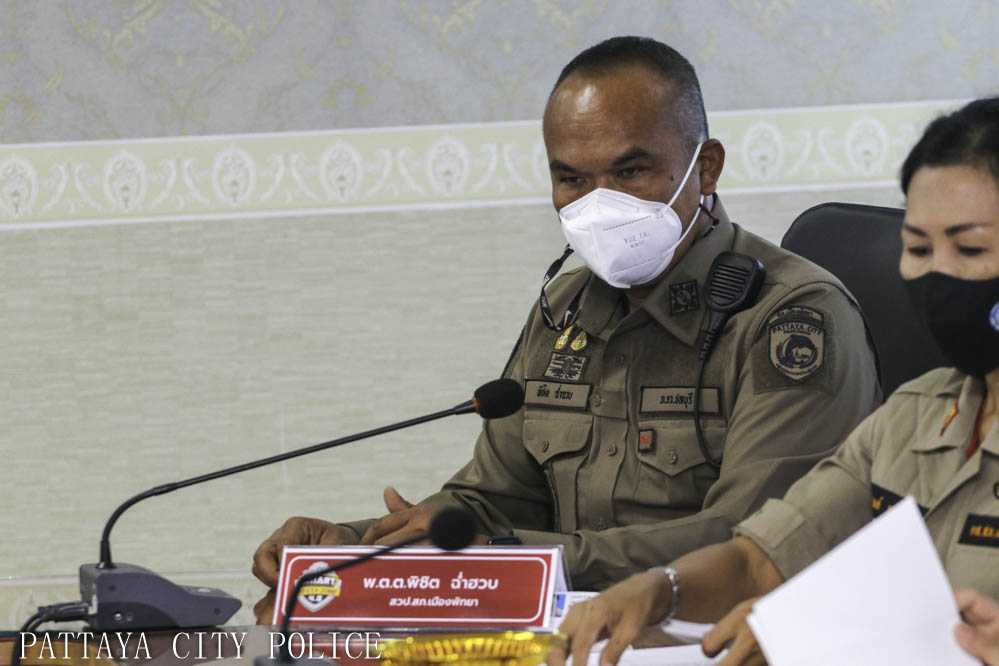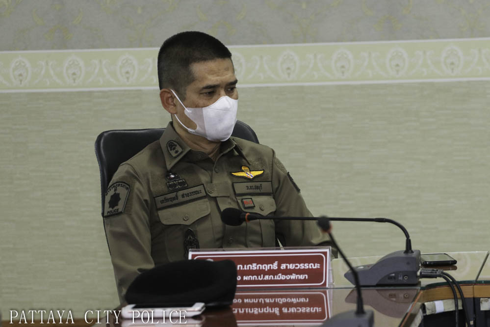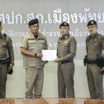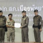 พ.ต.อ.กุลชาต กุลชัย ผกก.สภ.เมืองพัทยา พร้อมด้วย พ.ต.ท.เกริกฤทธิ์ สายวรรณะ รอง ผกก.ป.สภ.เมืองพัทยา พ.ต.ต.พิชิต ฉ่ำฮวบ สวป.สภ.เมืองพัทยา ร.ต.ท.ทองอินทร์ ปัญญานาม รอง สวป.สภ.เมือพัทยา และเจ้าหน้าที่ตำรวจชุด ชุมชนยั่งยืน เอาชนะยาเสพติดแบบครบวงจร ตามยุทธศาสตร์ชาติ