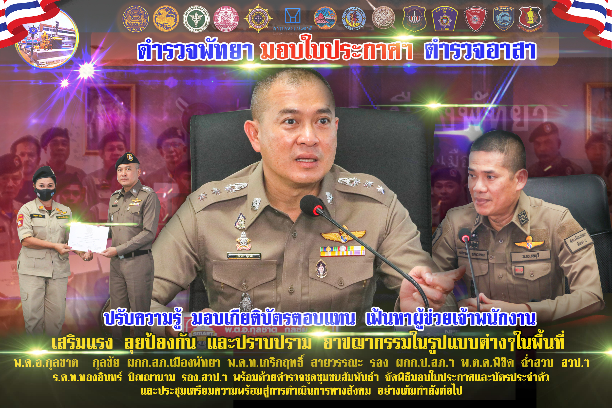พ.ต.อ.กุลชาต กุลชัย ผกก.สภ.เมืองพัทยา จัดพิธีมอบใบประกาศพร้อมด้วยบัตรประจำตัว ตำรวจอาสา ประจำสถานีตำ