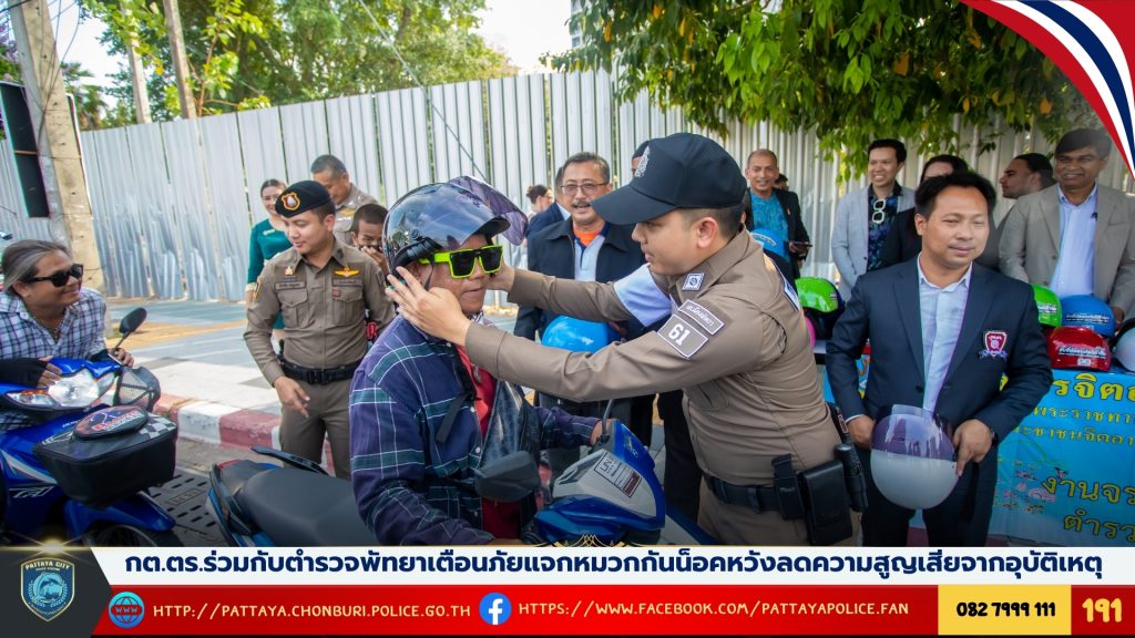 กต.ตร.สภ.เมืองพัทยา ร่วมแจกหมวกนิรภัยให้ประชาชน 31 มีนาคม 2567 โดย admin / O6 การประชาสัมพันธ์ข้อมูลการดำเนินการ,O6 ผลการดำเนินการเดือน มี.ค.67,ผลการทำงาน กต.ตร.สภ.เมืองพัทยา,ผลการทำงานเดือน มีนาคม คณะกรรมตรวจสอบและติดตามการบริหารงานตำรวจ ของสถานีตำรวจภูธรเมืองพัทยา (กต.ตร.สภ.เมืองพัทยา) ได้ร่วมกันจัดกิจกรรม รณรงค์ขับขี่ปลอดภัย สร้างวินันลดอุบัติเหตุโดยมีเจ้าหน้าที่ตำรวจ สภ.เมืองพัทยา ร่วมจัดกิจกรรมอย่างคับคั่งรวมถึงการเชิญสื่อมวลชนเข้าร่วมกิจกรรมในครั้งนี้ เพื่อเผยแพร่การรณรงค์ให้ประชาชนได้ตระหนักถึงความพยายามให้ผู้ขับขี่หรือโดยสารรถจักรยานยนต์ได้ตระหนักรู้ถึงความสูญเสียที่อาจจะเกิดขึ้นได้ในอนาคต Post Views: 90 FacebookFacebookXXLINELine