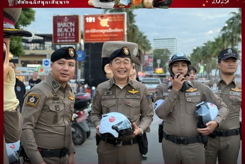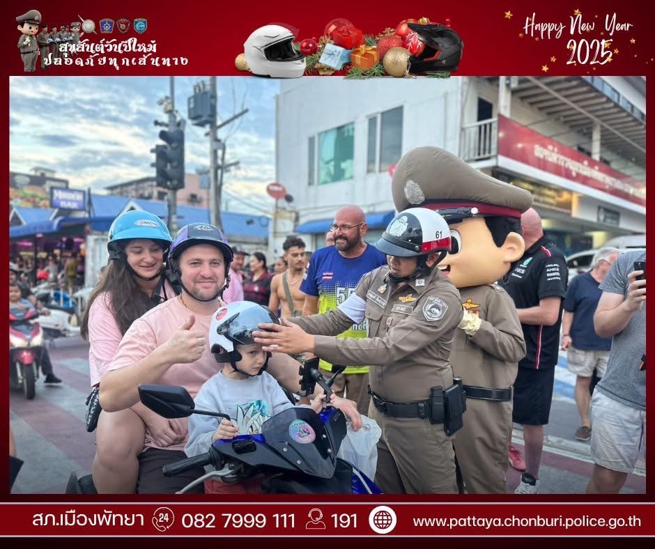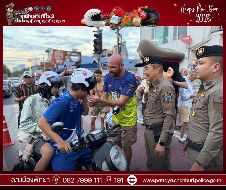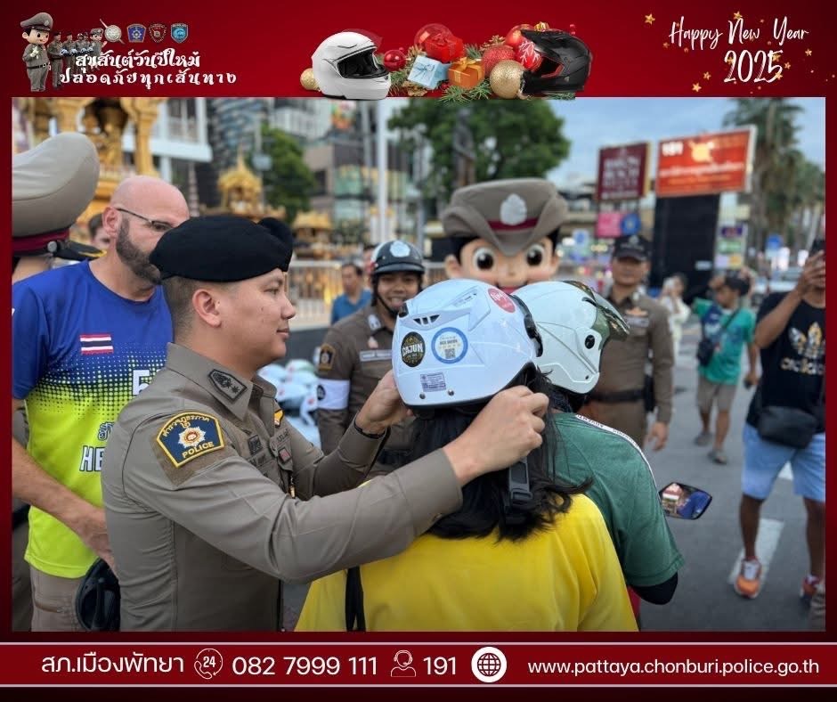😍ตำรวจพัทยา ดักแจกหมวกหน้าโรงพัก
